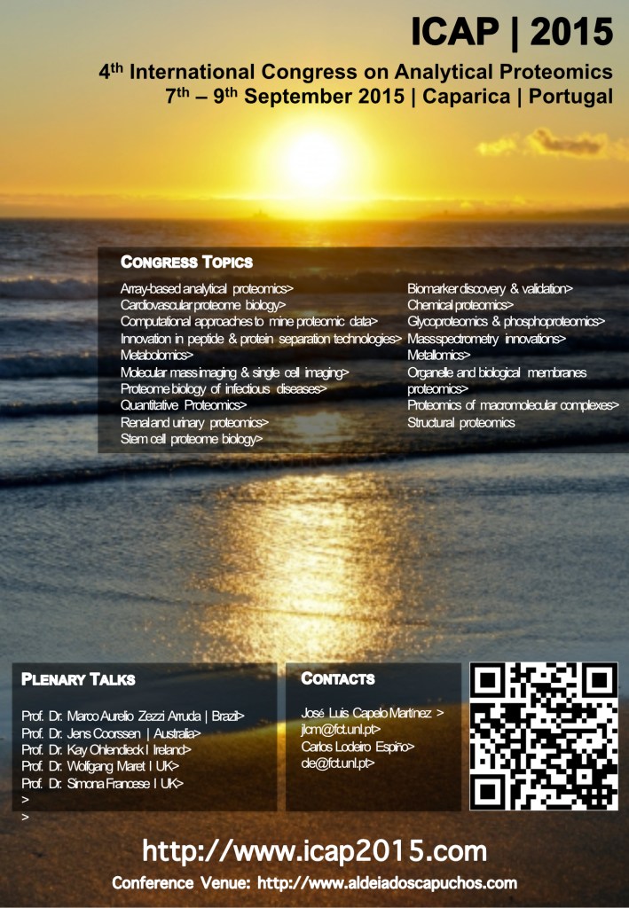 10. IV International Conference on Analytical Proteomics, (ICAP). September 7th-9th, 2015, Costa de Caparica, Portugal.