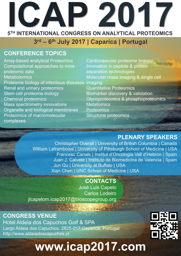21. V International Congress on Analytical Proteomics (ICAP), July 3rd-6th, 2017, Costa da Caparica, Portugal.