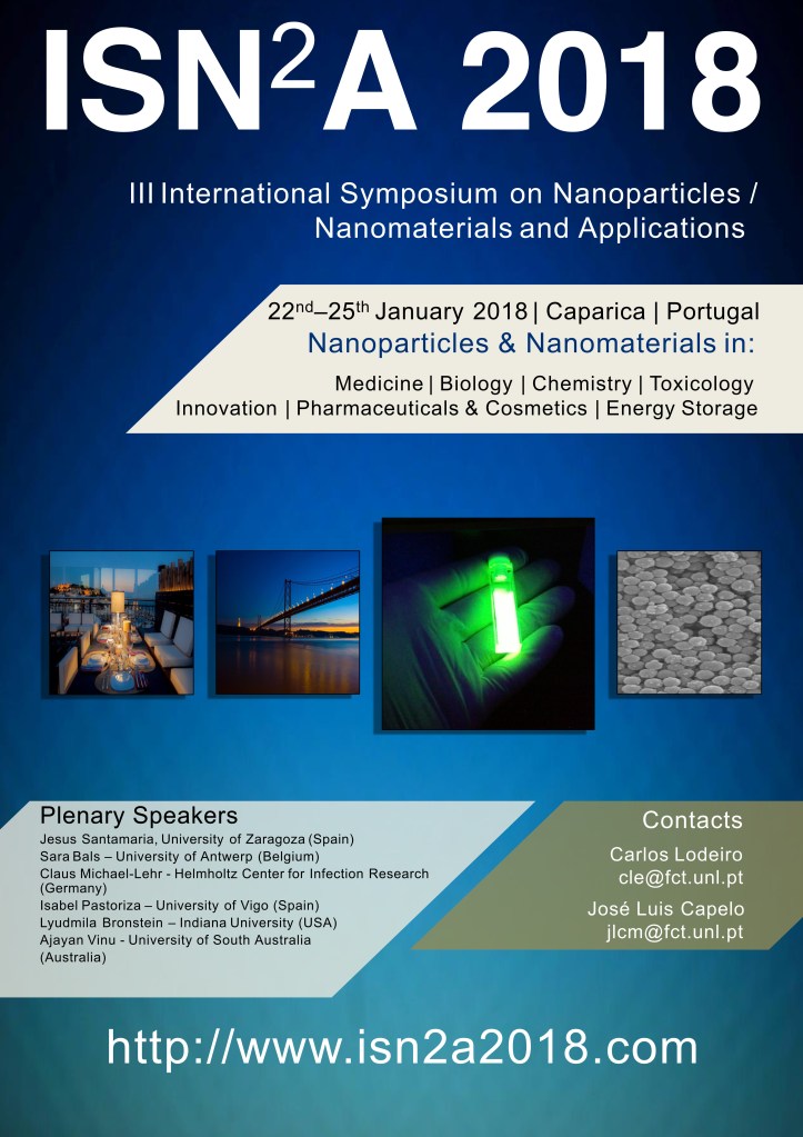 27. 3rd International Symposium on Nanoparticles/Nanomaterials and Applications (ISN2A 2018), January 22th-25rd, 2018, Costa da Caparica, Portugal.