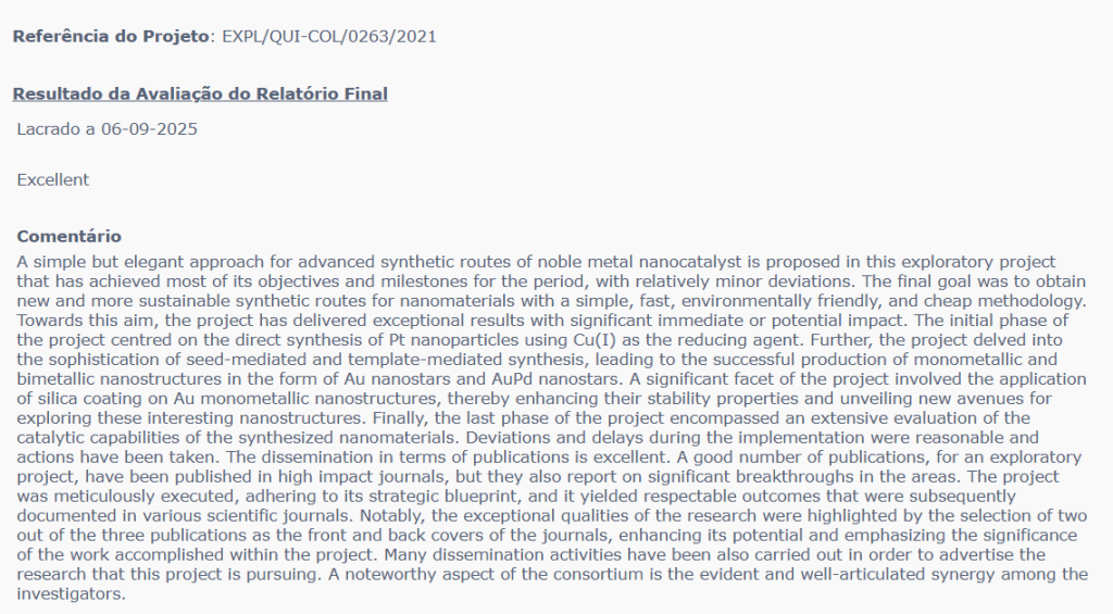 Result of the project by the evaluation panel: Excellent.
